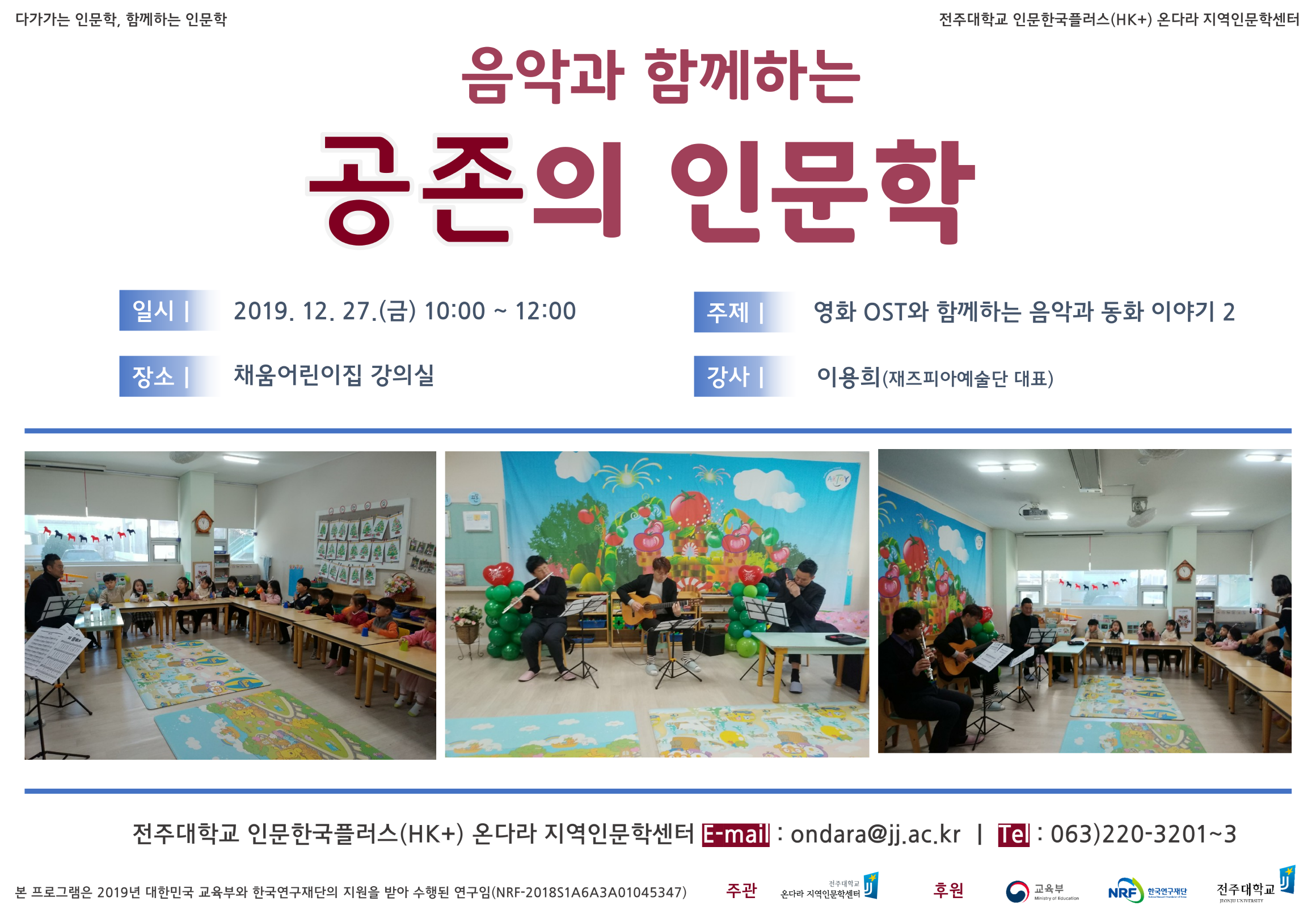 | 187 | 기타 | 음악과 함께하는 『공존의 인문학』 6차 (2019. 12. 27.) | 온다라 지역인문학센터 | 20-01-08 | 989 |