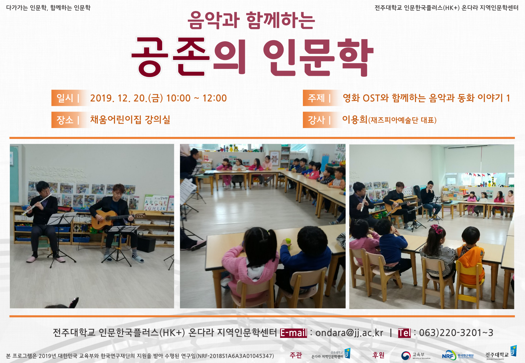 | 174 | 기타 | 음악과 함께하는 『공존의 인문학』 3차 (2019. 11. 29.) | 온다라 지역인문학센터 | 19-12-24 | 972 |