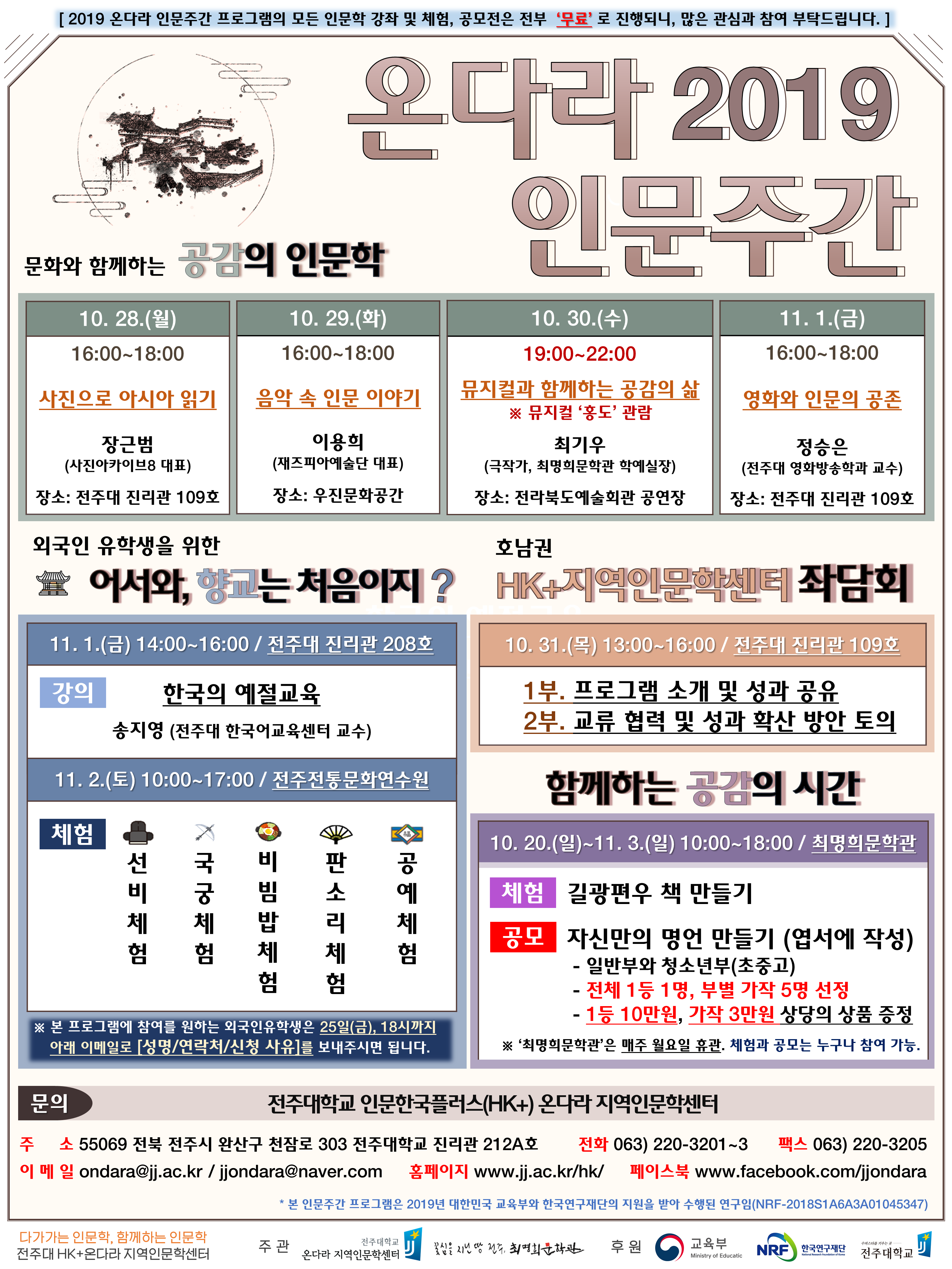 2019 온다라 인문주간 『인문 체험 및 공모전』 안내
