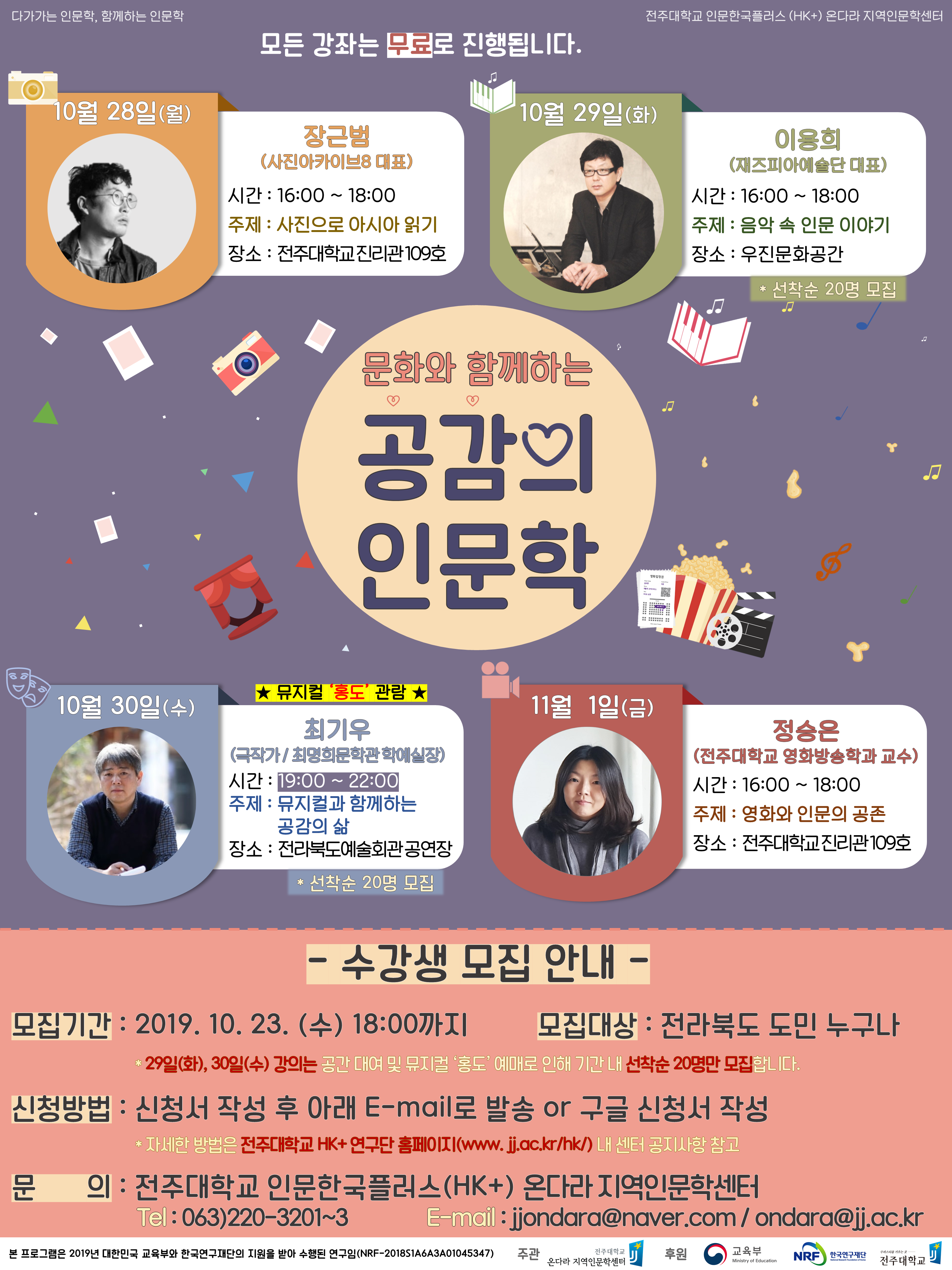 2019 온다라 인문주간 『문화와 함께하는 공감의 인문학』 수강생 모집 (~19. 10. 23.(수))
