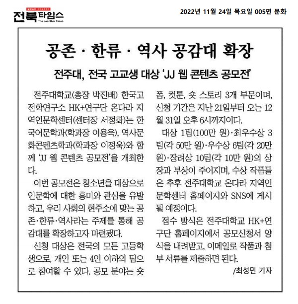 | 651 | 기타 | 공존·한류·역사 공감대 확장 | 온다라 지역인문학센터 | 23-01-17 | 299 |