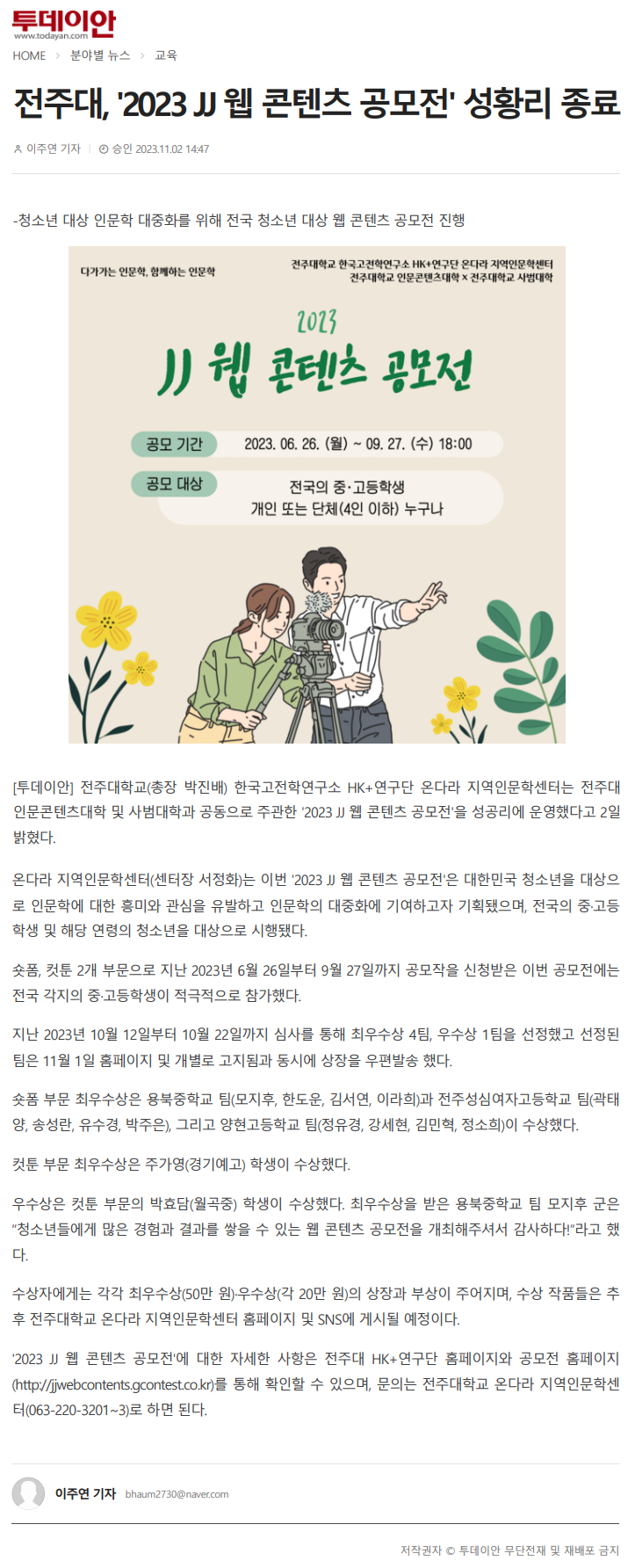 전주대학교 「2023 JJ 웹 콘텐츠 공모전」