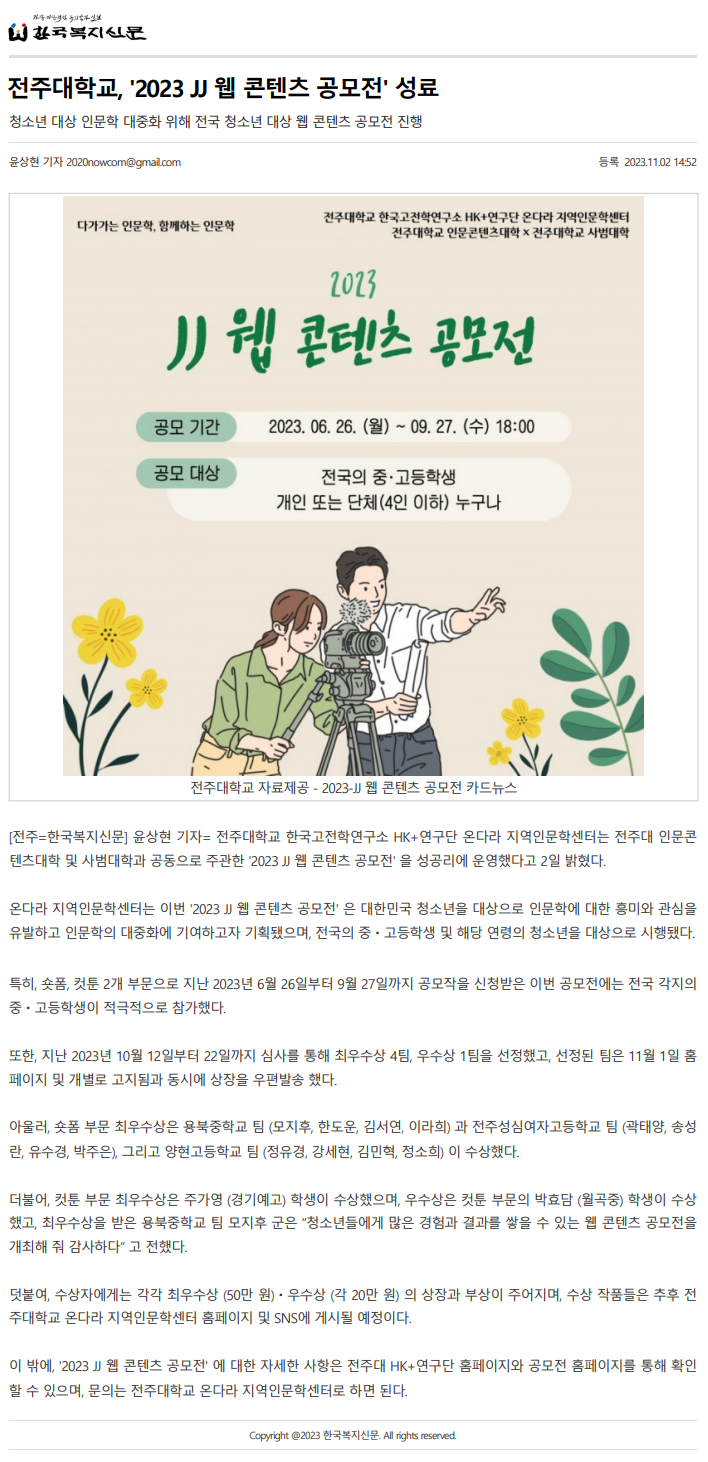 전주대학교, 2023 JJ 웹 콘텐츠 공모전 성황리 종료