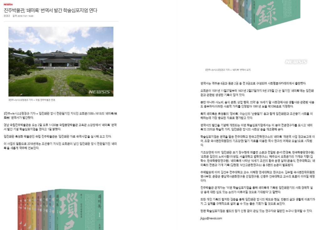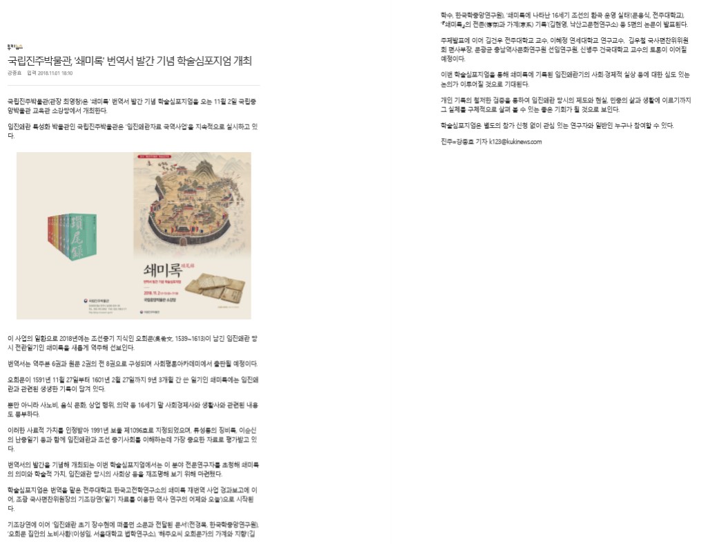 국립진주박물관, '쇄미록' 번역서 발간 기념 학술심포지엄 개최