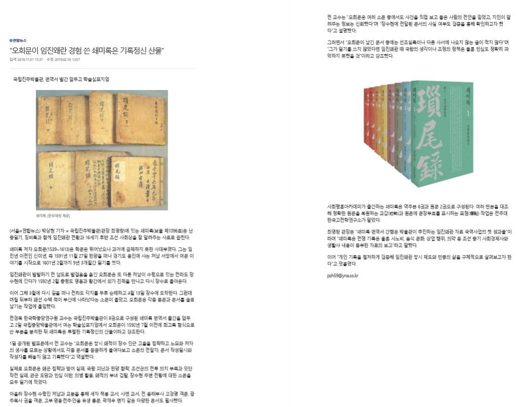 | 91 | 기타 | "오희문이 임진왜란 경험 쓴 쇄미록은 기록정신 산물" | 온다라 지역인문학센터 | 19-08-08 | 249 |