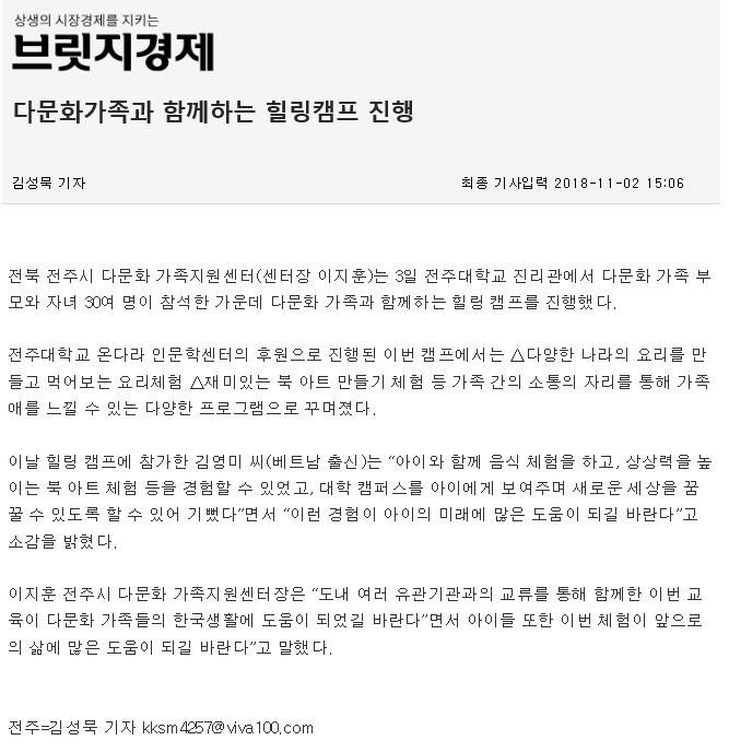 다문화가족과 함께하는 힐링캠프 진행