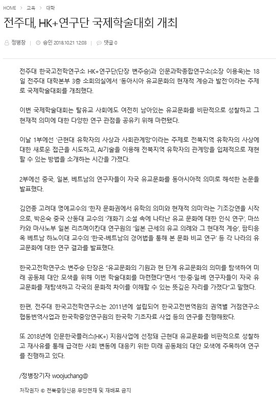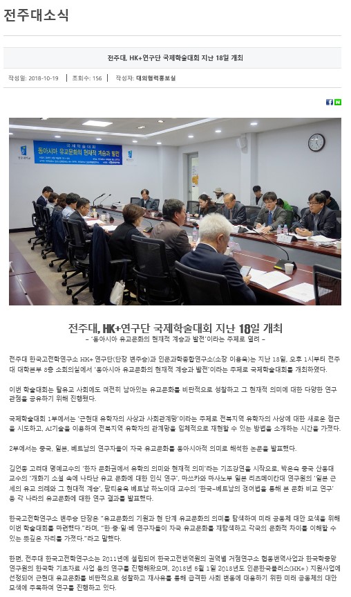 | 70 | 기타 | 전주대, HK+연구단 국제학술대회 지난 18일 개최 | 온다라 지역인문학센터 | 19-08-08 | 234 |