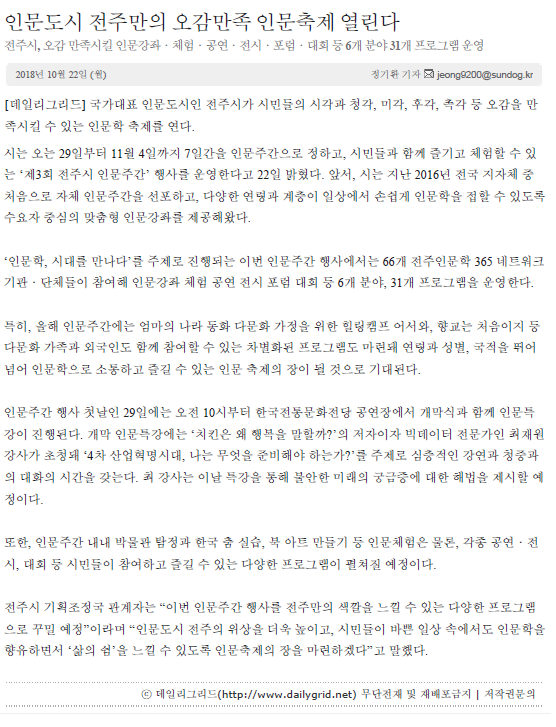 <전주시청> 인문도시 전주만의 오감만족 인문축제 열린다!