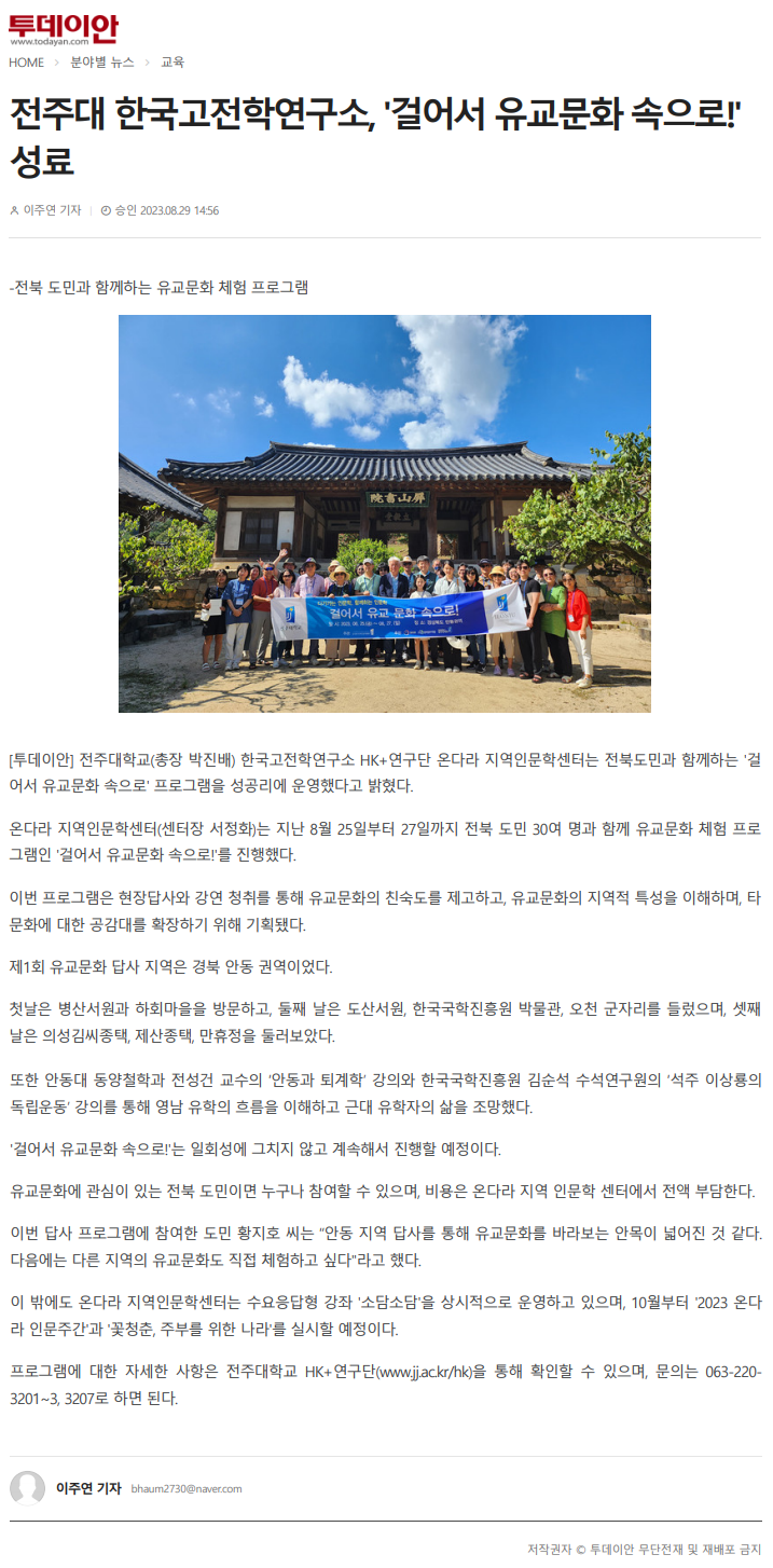 전주대 한국고전학연구소, '걸어서 유교문화 속으로!' 성료