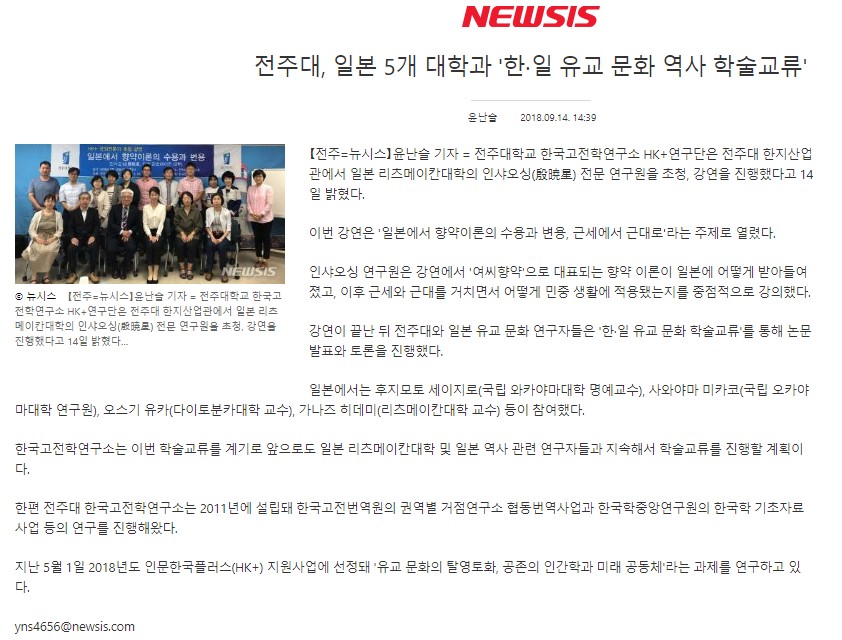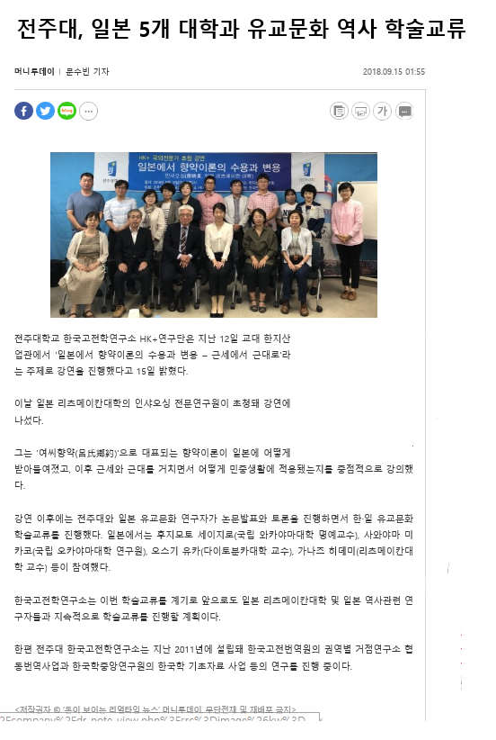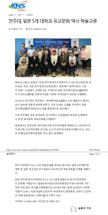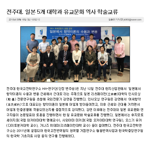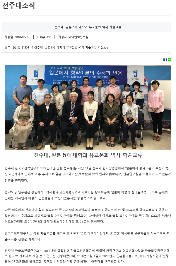 | 56 | 기타 | 전주대, 일본 5개 대학과 '한·일 유교 문화 역사 학술교류' | 온다라 지역인문학센터 | 19-08-07 | 261 |