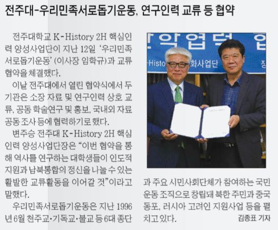 한국고전학연구소-우리민족서로돕기운동 협약 체결